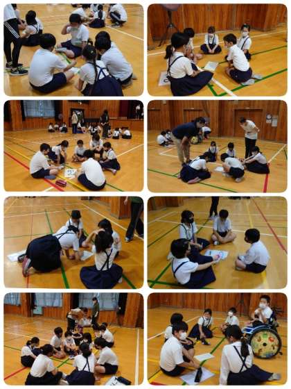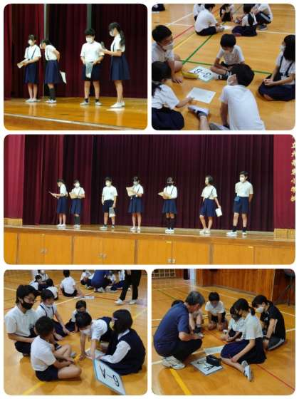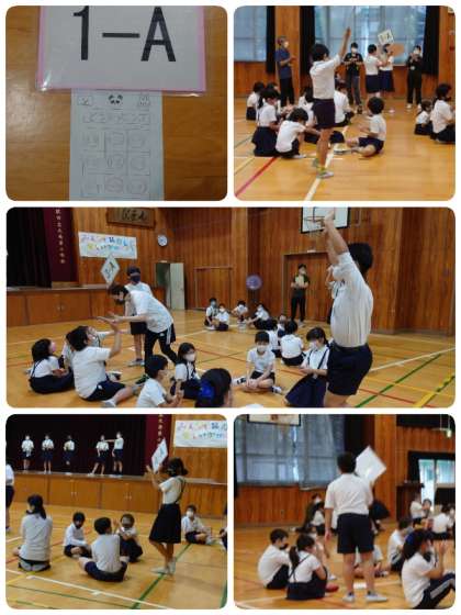 今日の児童集会は、「動物ビンゴ」でした。先週と同じように、9個のマスに動物の名前をみんなで考えて書いていきました。
