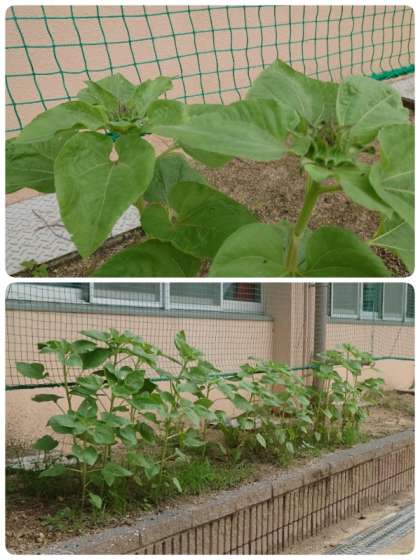 地域の方からいただいたヒマワリのつぼみが少しずつ大きくなってきました。背丈はあまり高くありませんが、どんな大きさの花が咲くのか今から楽しみです。