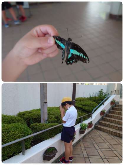 「もう寿命やってんね。土の上にそっと置いといたり。自然にかえるわ。」と答えると、植え込みの見えにくいところにそっと置いていました。その後、手を合わせていました。命の大切さを知っている優しい気持ちがしっかり育っています。