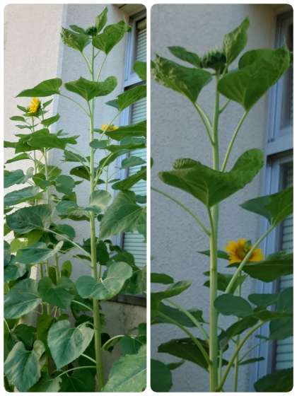 今日初めて学習園のヒマワリの花が咲きました。花のサイズは小さいですが、鮮やかな黄色です。つぼみがたくさんついているので、これからどんどん咲いていきます。