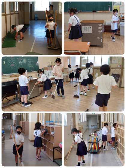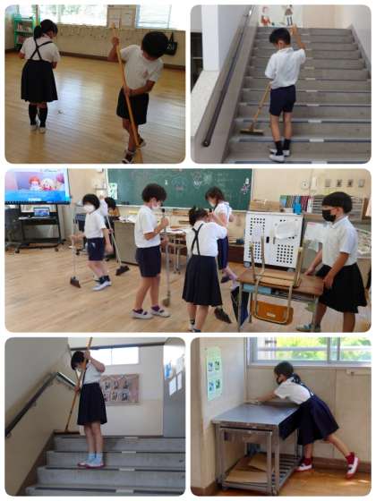 明日は1学期の終業式。今日のお掃除は、学校全体でいつもより時間をとって大掃除をしました。普段やっていないところまでピカピカになるように、一生けんめいお掃除しました。これで明日の終業式を気持ちよく迎えることができますね。
