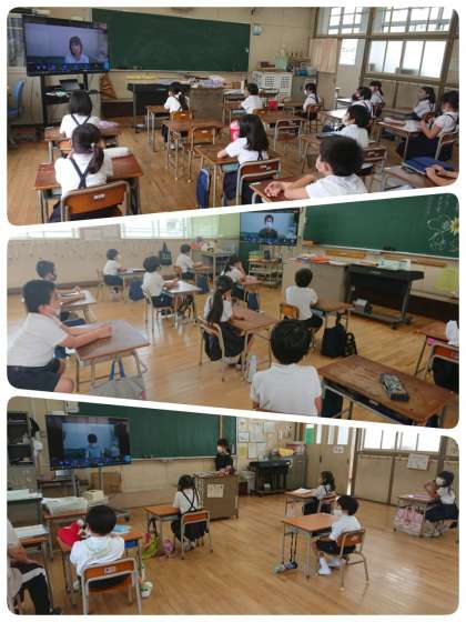 始業式はオンラインで実施しました。大阪市歌と校歌は心の中で歌いました。子ども達は教室で静かにお話を聞くことができていました。