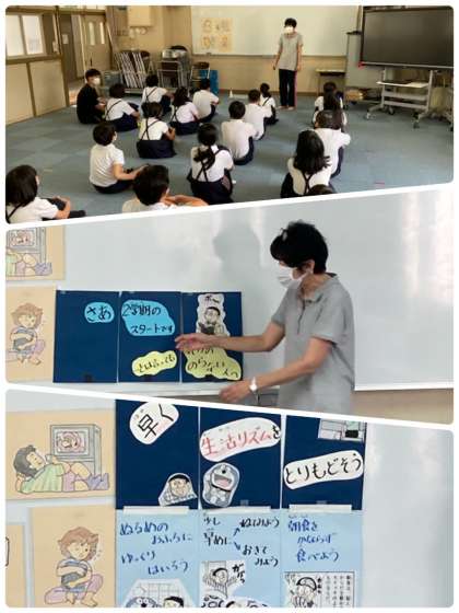 今日は5・6年生の発育2測定がありました。保健の先生から、健康に関して3つお話がありました。