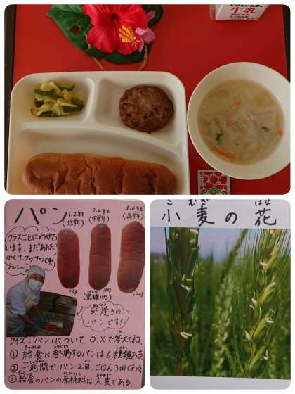 週5日間の給食で、パンは2回提供されます(残り3回は米飯です)。パンの種類も、黒糖パン以外に食パン・コッペパン・ライ麦パン・パンプキンパン・おさつパン・レーズンパンの計7種類あります。パンの大きさも低学年・中学年・高学年で違いがあり、子ども達の成長に合わせて提供されています。