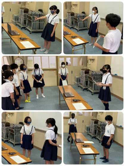 みんなで「最初はグー。ジャンケン ホイ ホイ。」と言います。最初のホイの時に、まず集会委員会の子どもが手を出します。2回目のホイで、教室にいる子ども達が集会委員会の子どもに勝つ手を出します。反対に集会委員会の子どもに負けるやり方もしました。勝つのは簡単にできましたが、意外と負ける手を出すのは難しそうにしていました。短い時間でしたが、みんなで楽しむことができました。