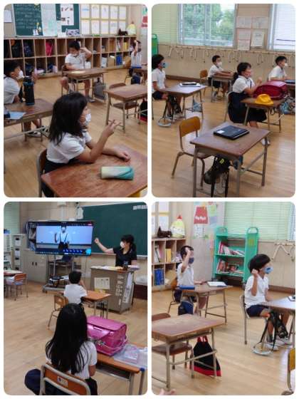 今日の児童集会はオンラインで、「後出しジャンケン」をしました。