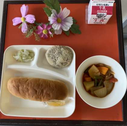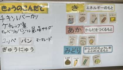 今日の給食で提供されたチキンレバーカツですが、材料は鶏のレバー(肝臓)で、カレー味にして食べやすく調理されています。レバーには、血液を作る時に必要な鉄分が多く含まれています。他に、小松菜やホウレン草やにも鉄分が多く含まれていますので、ご家庭での食事にも適宜加えてみてください。