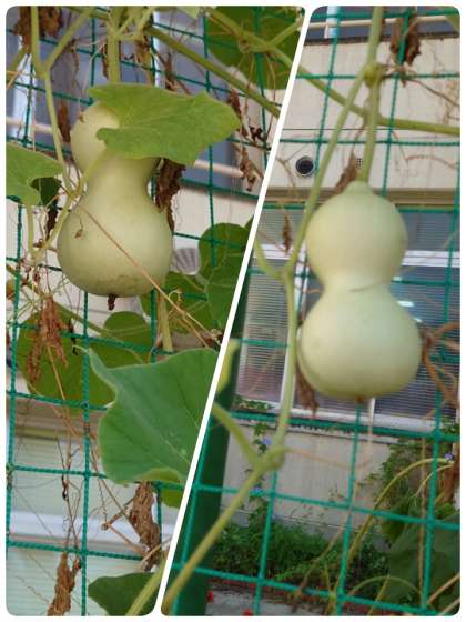 今朝、4年生のヒョウタンの数を数えてみると、大きいのも小さいのも含めて15個はあります。おかげで4年生全員に渡すことができそうです。