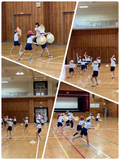 運動会の練習が始まっています。3年生は、花笠とダンスをしていました。基本的な振り付けに加え、隊形移動の練習です。なんと踊りながら隊形移動を行っていました。すごいですね!こまめに水分補給を行いながら頑張りました。