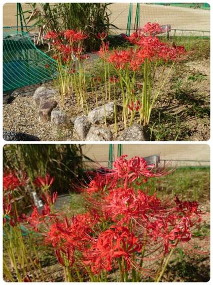 築山にヒガンバナが咲き始めました。色鮮やかでとてもきれいです。