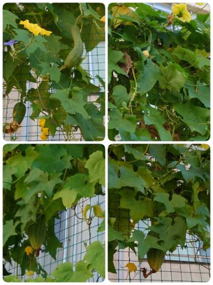 9月末になっても九条東小学校のヘチマは元気です。今朝何回も数えなおしたのですが、大きい実も小さい実も合わせて13個もありました。葉っぱに隠れているので見つけにくい実がたくさんありました。今年は豊作です。