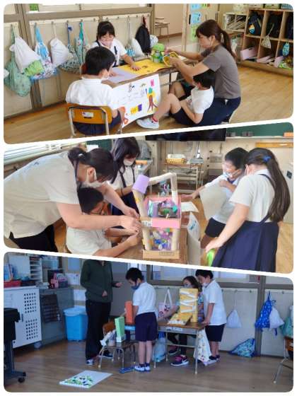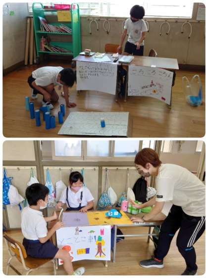 お店の名前は、「コロコロガーレ」「ビー玉コロコ」「ころころころん」「ロケットポン」「とことこ車」で、なかなかクオリティの高いおもちゃで、他の先生達も教室に来てくれて一緒に楽しんでいましたよ。