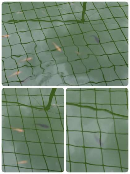 5年生が理科の学習で育てていたメダカの数がすごく増えたので、築山の横の池に放しました。2学期に入って池を見ると、メダカが大きく成長していました。群れになって泳いでいます。よく育ったなぁと思いながら見ていると、その中に真っ黒のメダカが数匹。これは珍しい黒メダカでは・・・。間違いありません。何度見ても真っ黒なメダカが泳いでいます。黒メダカは、絶滅危惧種に指定されている、今ではとても珍しいメダカです。運動会に来られた時にそっとのぞいてみてください。