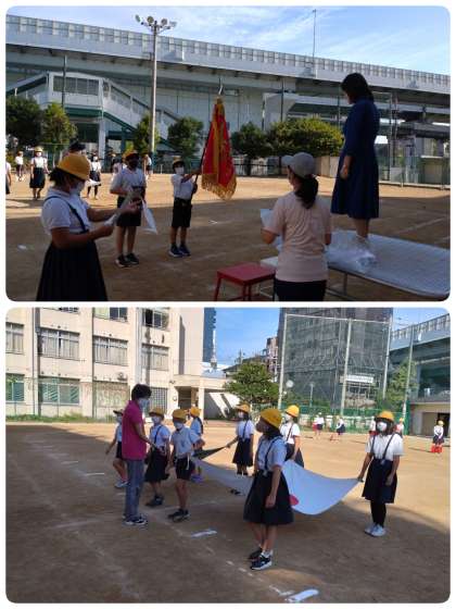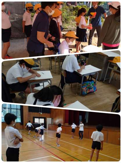 前回は教室で準備や用意をしていた児童も、今日は運動場に出て、当日を想定した練習に励んでいました。