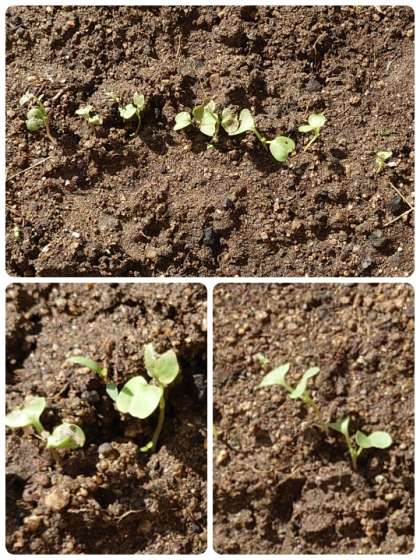 学習園にまたかわいいハツカダイコンの子葉が出てきました。なかよし学級の子ども達が育てています。草抜きをして、土を耕し、種をまいて・・・。今は毎日水やりをがんばっています。