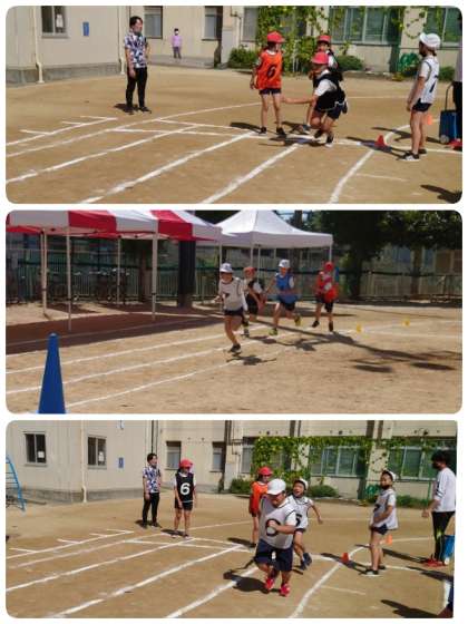 今回の運動会では、4年と5年が合同でリレーをします。練習も本格的になってきました。当日はかっこよく走る姿を見てください。
