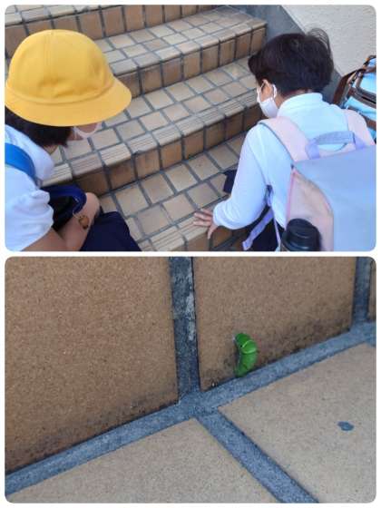 正門の階段に「アゲハのさなぎ」発見!!