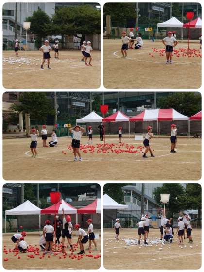 1・2年は、「Let‘s Dance!!(団演)」「チェッコリ 玉入れ(団競)」「よーい どん!(個走)」の練習をしました。当日の玉入れは6年生が応援で参加します。何回も練習してきた団体演技は、キラキラの飾りをつけるたびに楽しそうに踊っています。チェッコリダンスのノリノリです。笑顔がとってもかわいいです。
