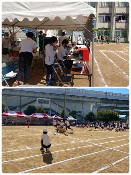 放送担当の児童の司会のもと、児童の演技・競技が始りました。
