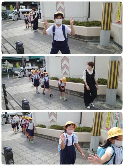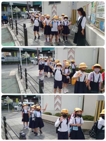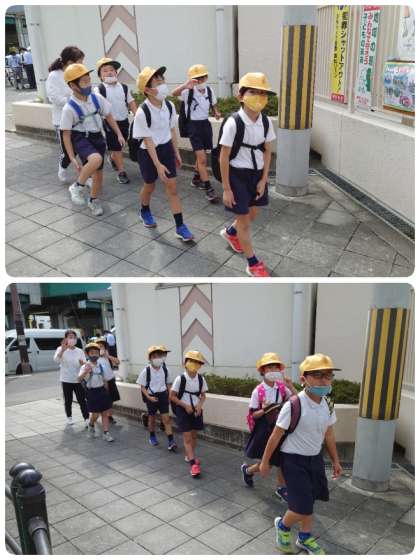 予定通りの時間に2・3年生がニコニコしながら帰ってきました。図書館での様子は、後ほど・・・。