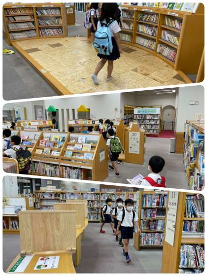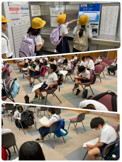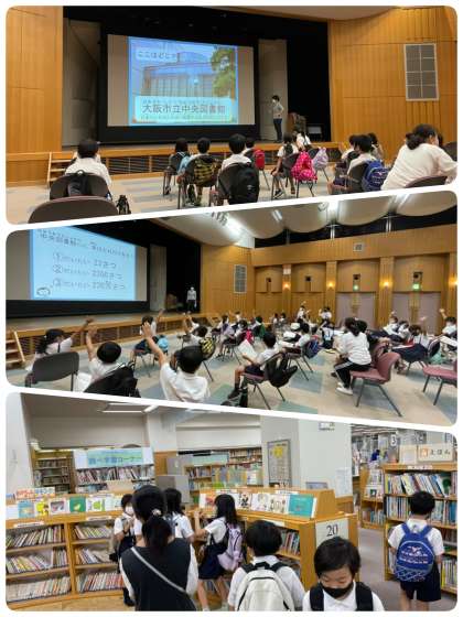 今日は2年生と3年生が一緒に、大阪メトロに乗って大阪市立中央図書館に校外学習に出かけました。