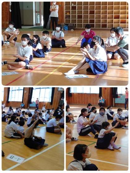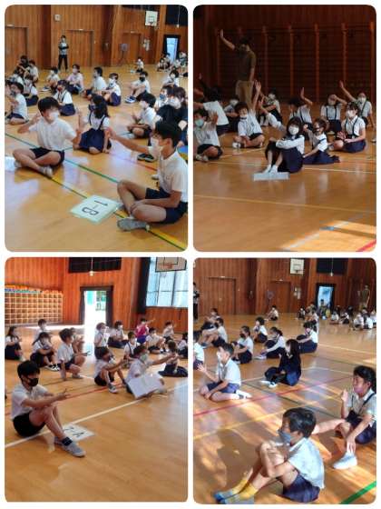 今日の児童集会は、「後出しジャンケン」でした。集会委員の子どもが出す「グー・チョキ・パー」を見て、前半は勝つジャンケンを、後半は負けるジャンケンを出します。ルールは簡単ですが、子ども達はワクワクした表情で参加していました。連続で勝つことができた子ども達に、みんなで拍手を送りました。来週の集会は何かな?