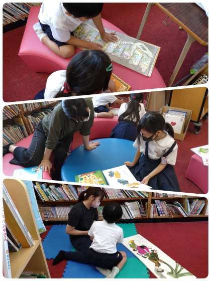 毎週木曜日は学校図書館補助員の先生が来てくださる日で、各学年が1時間ずつ図書室を利用しています。