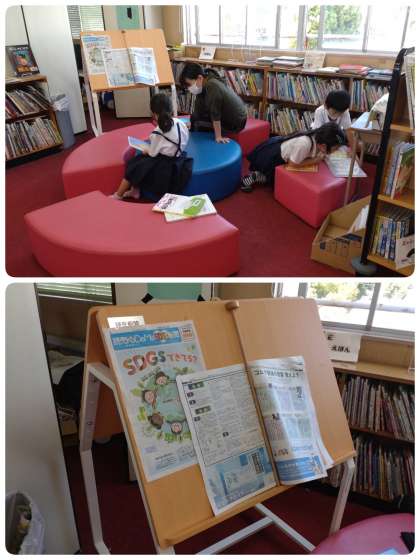 また図書室の片隅に、この夏に読売新聞社から寄贈された新聞閲覧台を設置していて、毎週1回届く子ども新聞が掲示されていました。