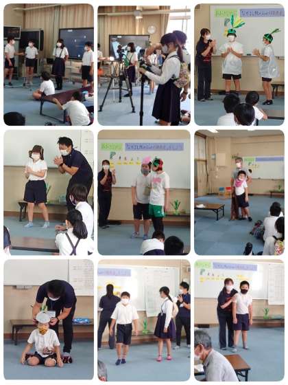 1時間目は「なかよしタイム」の公開授業でした。「なかよし秋のみのり発表会」を行いました。前に練習に取り組む子ども達の様子をお知らせしていましたが、いよいよ本番。