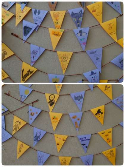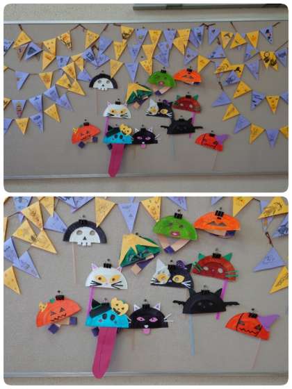 10月の玄関掲示はハロウィン。4年生が作成しました。掲示板を見ていると4年生の子どもが、「これ、私が作ったの。」と指をさして教えてくれました。かわいいキャラクターでいっぱいですよ。
