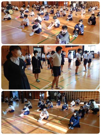 今日は、10月10日の運動会では、1人1人が全力で競技・演技に取り組んでいた姿が素晴らしかったことをほめました。そして、これから校外での行事やゲストティーチャーに来ていただく学習がたくさんあるので、しっかり学習しようということと、もちろん日々の学習も今まで通りがんばろうというお話をしました。