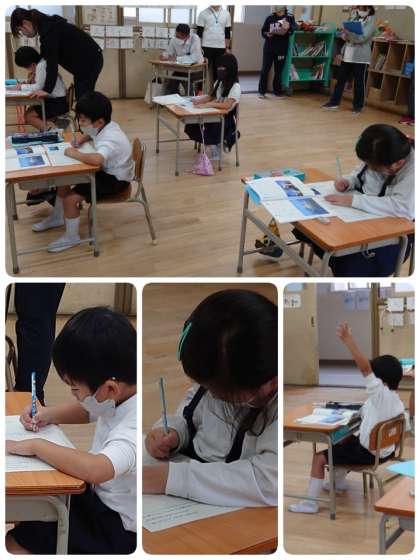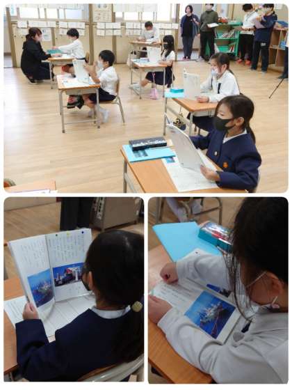 5時間目に国語科の研究授業を実施しました。今回の単元は、1年の『乗り物のことを調べよう』で「いろいろなふね」という説明文の学習でした。この説明文には、客船・フェリーボート・漁船・消防艇の4つの船が出てきます。それぞれの「役目」「造り」「できること」を読み取っていきます。