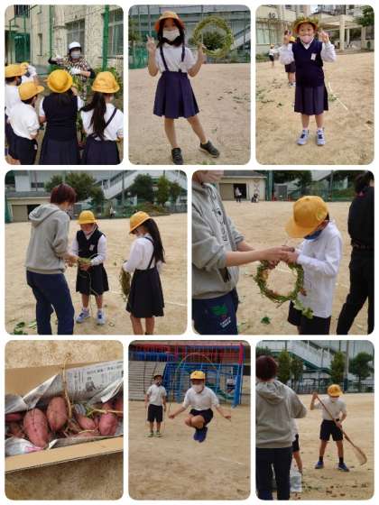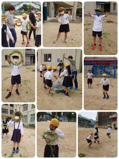 その後は残ったつるでなわとびを始めた子ども達。とても楽しく活動できました。最後は運動場に散らばったつるや葉っぱをきれいに片付けるところまでがんばりました。リースが乾燥したら今度はいろいろな飾りをつける予定です。