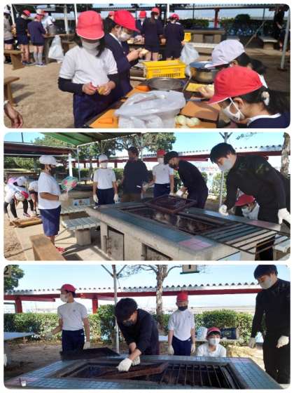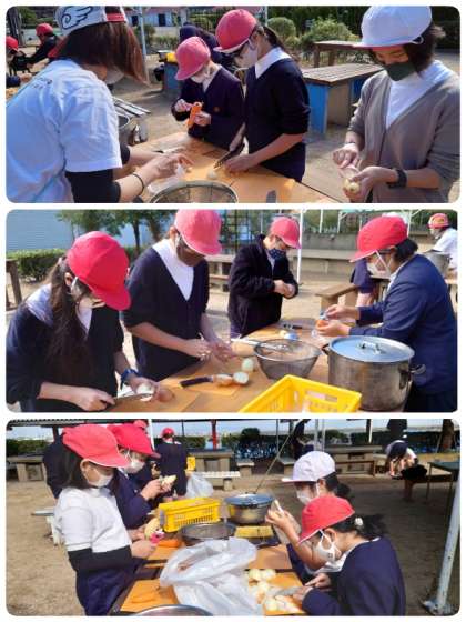 みんなでワイワイ言いながら、火起こし係と野菜係に分かれて、カレー作り開始です。