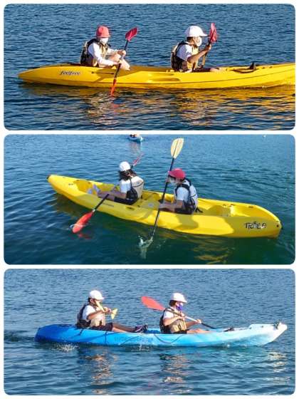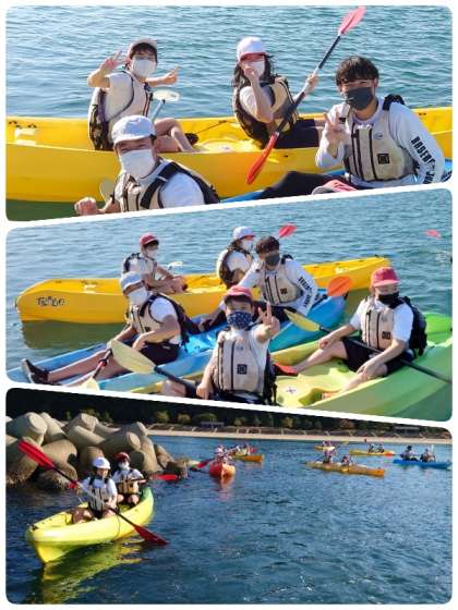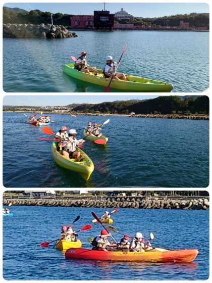 沖まで出てきました。みんなとってもうれしそうに、元気いっぱい漕いでいます。
