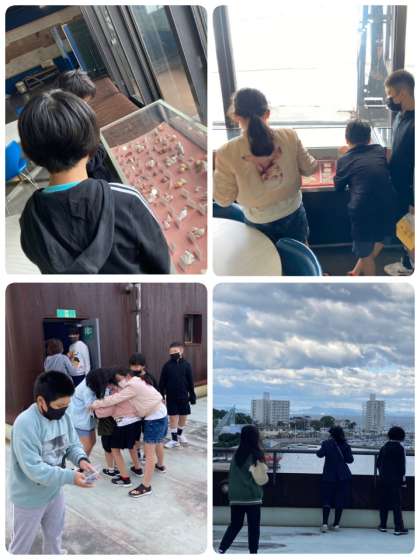 朝ごはんの後、屋上デッキに行きました。六甲山や淡路島までよく見えて最高の景色です。