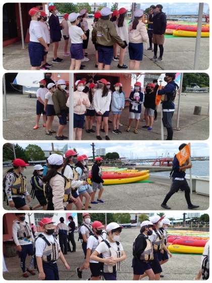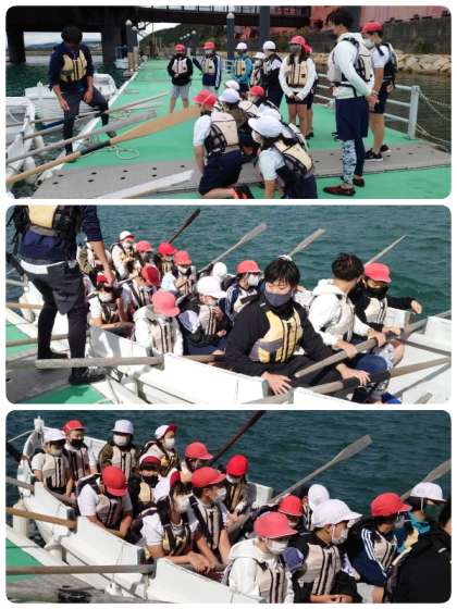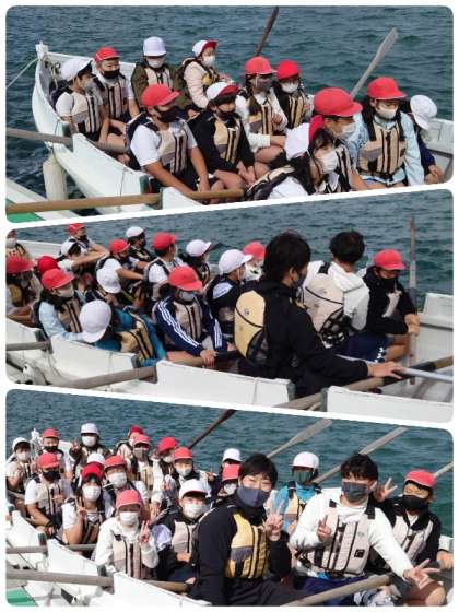 全員で1艇のカッターに乗ります。みんなで息を合わせてがんばってね。