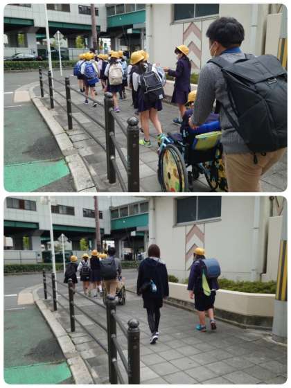 4年生が「津波・高潮ステーション」に向けて出発しました。
