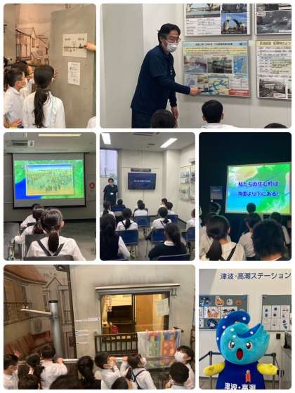 10月26日(火)の午後から、4年生が社会見学で津波・高潮ステーションに行きました。4年生の社会科の学習で使っている「わたしたちの大阪」という本にも紹介されている施設で、出発前から子ども達は楽しみしていました。