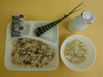 5月8日の給食「牛肉のちらしずし、五目汁、ちまき、牛乳」