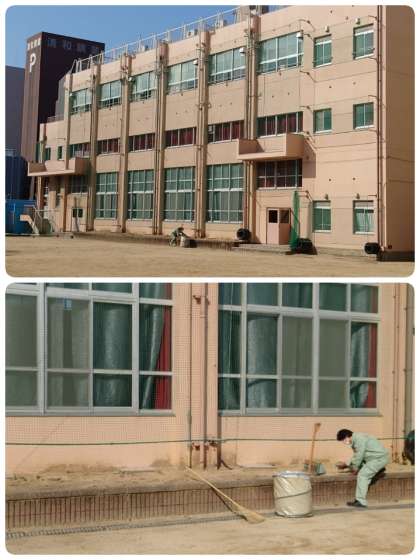 昨日お知らせした講堂の防球ネットのつるの撤去工事が1日で終わりました。つるが乾燥していたのでとても取りやすかったそうです。枯れたつるが全てなくなり、学校全体がぱっと明るくなりました。すっきりさわやか。やっぱりきれいな学校は気持ちいいです。