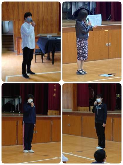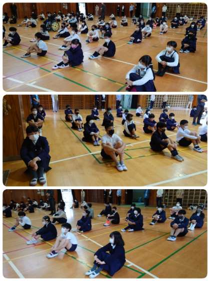 今日の児童朝会では、今朝、とても明るい声であいさつができていたことをほめました。続いて、「九条東小学校 学校安心ルール」についてお話をしました。最後までとても静かにしっかり聞くことができました。さすが東っこ!!
