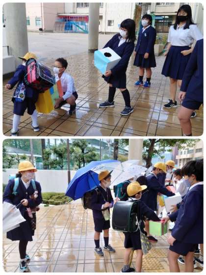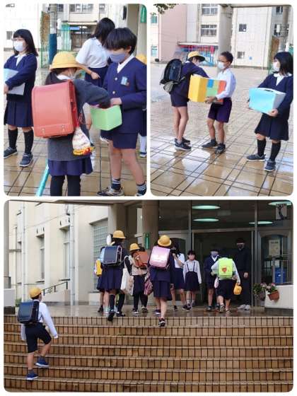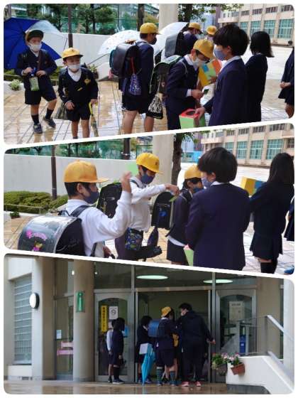 登校が始まり、しばらくは雨・風が強かったのですが、いつの間にか雨は止み青空が見えてきました。