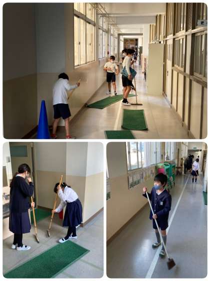 本活動は1〜6年生の縦わり班での掃除活動で、本年度から新しく始めたものです。今回から後期として清掃担当場所は変わりましたが、これまでと同様にみんなで仲良く校内をきれいにしていました。