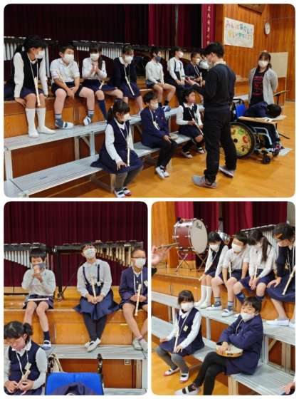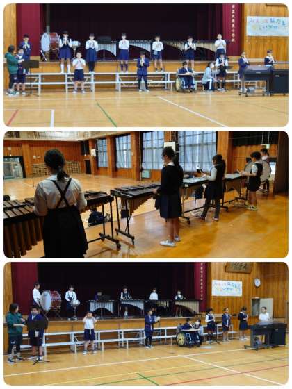 5時間目は4年生が練習していました。みんなの息がぴったり合った演奏になってきました。全曲流して練習してから、録音していた演奏をみんなで聴きました。演奏を実際に聴いてみると、もっとこんなふうにできるかなぁと気づくことができます。よりよいものにしたいと子ども達の練習にも熱が一層入りました。