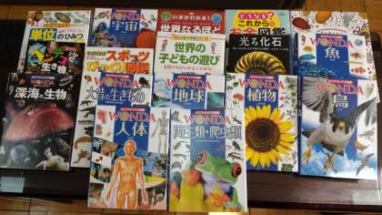 内容は、本校の学校図書館補助員の先生と相談した結果、図鑑セットにしました。「鳥」や「魚」、「人体」、「地球」、「宇宙」等から、「目には見えない微生物の世界」や「どうなる?これからのお金図鑑」、「世界の子どもの遊び」、「スポーツびっくり図鑑」等まで、幅広いジャンルの図鑑を寄贈していただきました。
