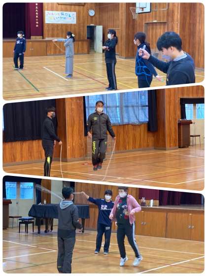 内容としては、“とばない”一人技や仲間と一緒にとぶ複数人技など、できると嬉しくなるような技をたくさん紹介していただき、参加した本校教職員も楽しみながらいい汗をかいていました。