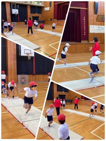 3・4年生と同じようにアップを終えると、マットを使っての活動でした。前転と後転の動作と似た運動を事前に行い、実際に前転・後転に挑戦しました。インストラクターさんの話をしっかりと聞いていたので、練習すればするほど上手にできるようになっていました。