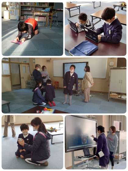 今日のなかよしタイムでは、ICT機器を活用した活動でした。5・6年生は、学校紹介の動画撮影、1〜4年生は、多目的室で調べ学習をしたり、お絵かきや好きな音楽を聴いたりする活動をしました。5・6年生が作っている動画の完成が待ち遠しいです。