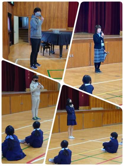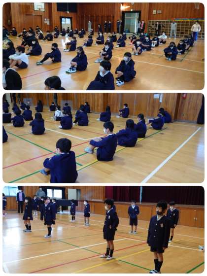 8時30分前に講堂へ向かうと、誰もいないのかなと思うくらい静かでした。講堂に入るとみんなそろって座っていました。姿勢も背中がピンとしています。素晴らしい態度で待ってくれていました。